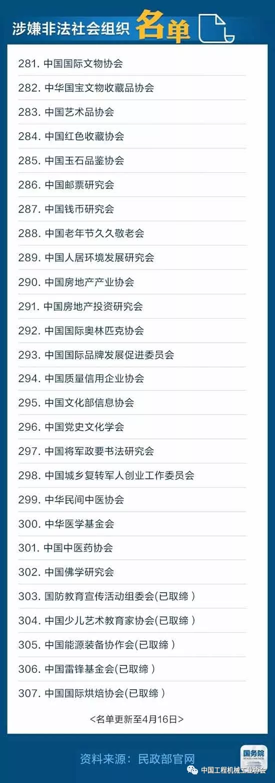 截至4月16日,民政部已公布307家涉嫌非法社會組織名單。其中與建設領域相關的有21家: