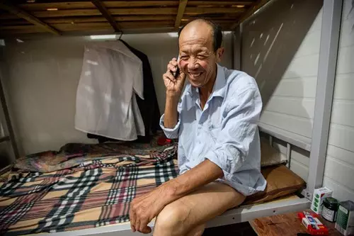 工地上休息中的陳老頭。