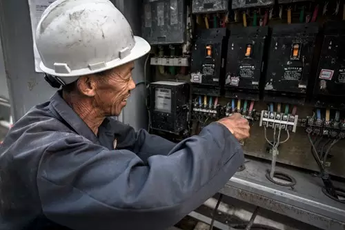 電表出現(xiàn)故障,陳老頭正在檢修。
