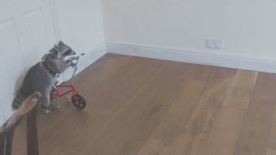 4.被貓虐了之后,這只逗逼浣熊居然用水攻擊喵星人~