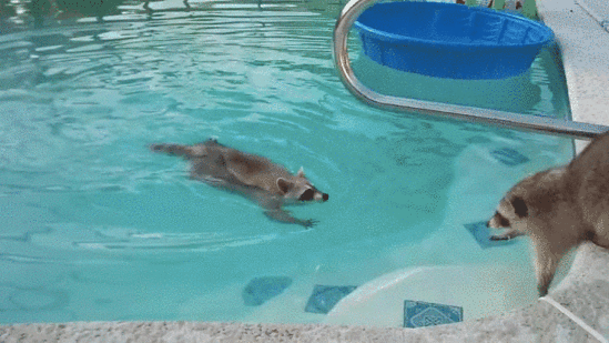 6.其實(shí)浣熊是游泳健將~但岸邊的那個(gè)好像很擔(dān)心水里的那只~