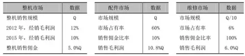 通過銷售環(huán)節(jié)分配機(jī)制的改革后,整機(jī)、配件銷售利益分配方式,如表一所示。