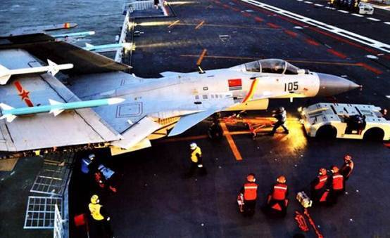 中國(guó)殲-15艦載戰(zhàn)斗機(jī)在“遼寧號(hào)”航母上進(jìn)行訓(xùn)練
